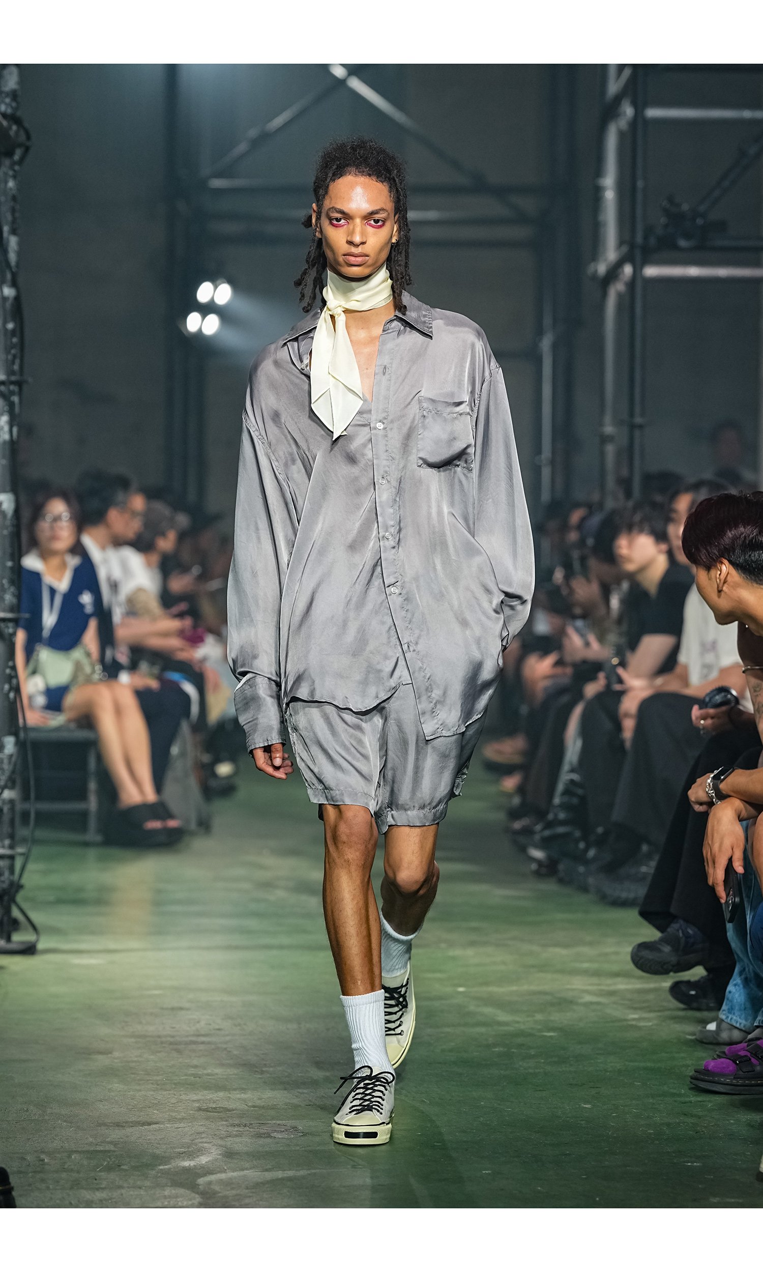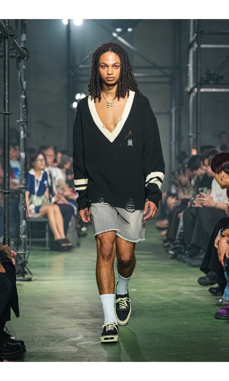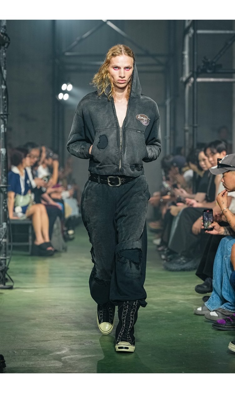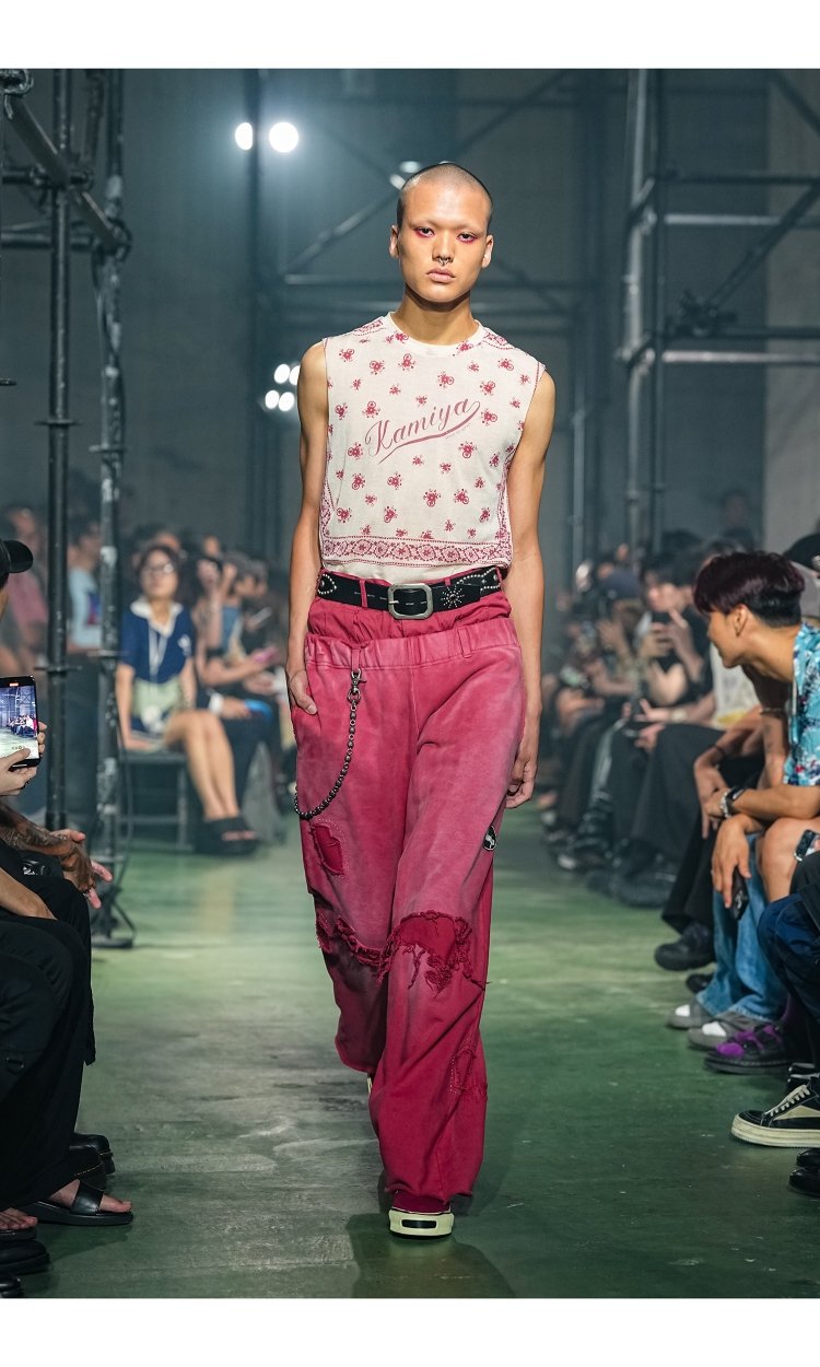 26SSコレクションでは、ルードでボーイッシュなアメカジスタイルを抱きしめながら、神谷の奥に眠るドレッシーで艶やかなエッセンスをすくいあげた。