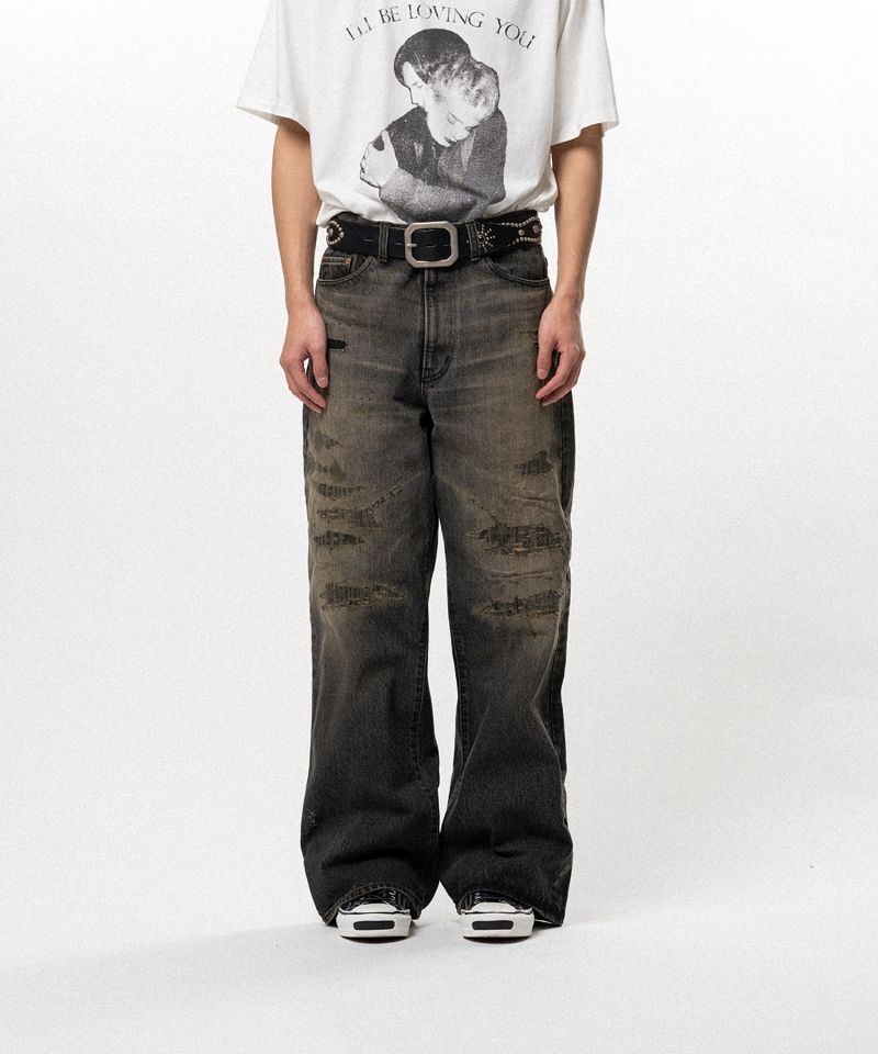 ※全体に施された穴あきやダメージ、汚し加工は、製品の特性としてデザインに取り入れられたものです。風合いとしてお楽しみください。