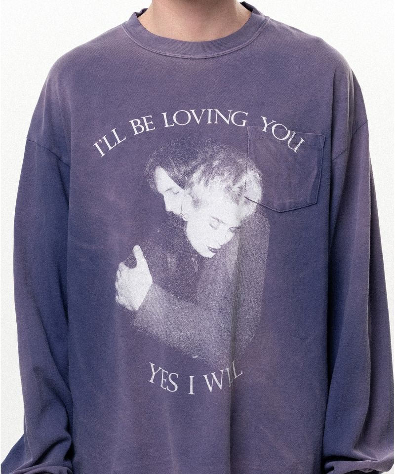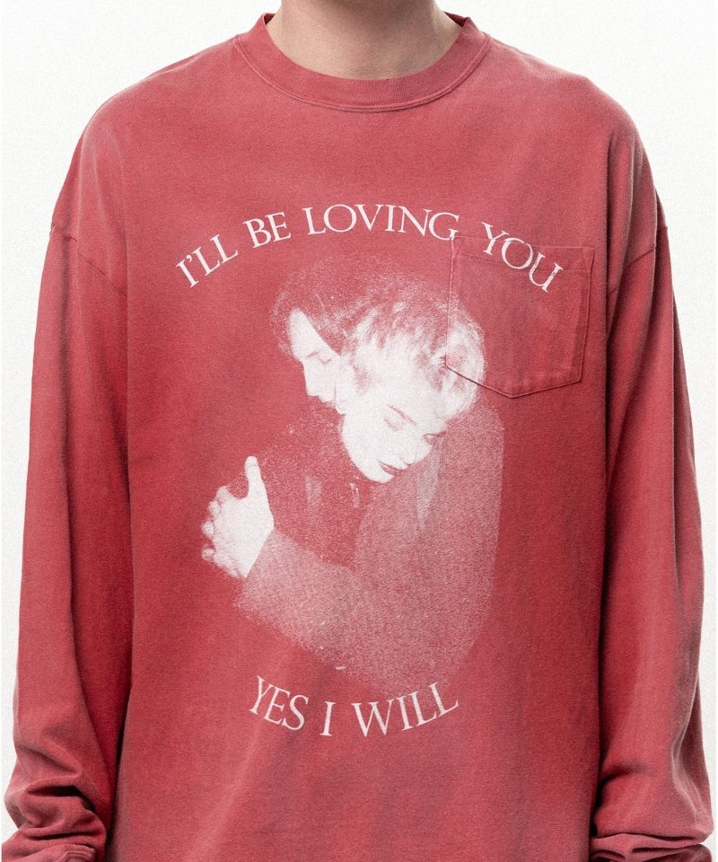 "LOVING" Distressed Long-Sleeve Pocket T-shirt