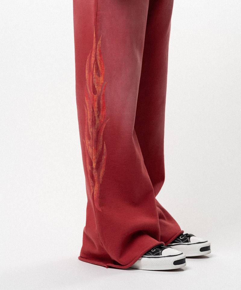 "CRAYON FLAME" Distressed Bootcut Sweat Pants